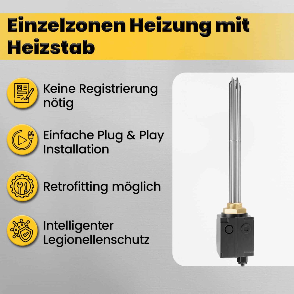 Der Nexol NEX R1 verfügt über ein hybrides Heizelement, das im unteren Bereich des Tanks positioniert ist. Diese Anordnung gewährleistet eine effiziente Speicherung von Solarenergie und sorgt gleichzeitig für schnellen Zugang zu Warmwasser. Das Heizelement nutzt sowohl Solarstrom als auch Netzstrom, um eine konstante Warmwasserversorgung zu gewährleisten, selbst an bewölkten Tagen oder bei hohem Energiebedarf. Dank dieser intelligenten Technologie wird der Energieverbrauch optimiert und gleichzeitig die Umwelt geschont.