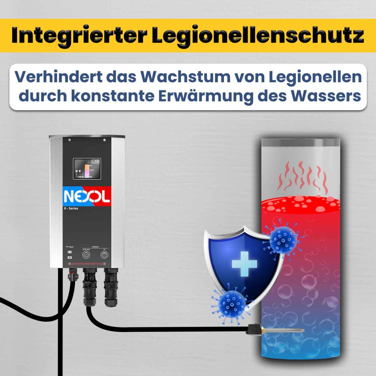 Ja, der Nexol NEX R1 ist mit einem eingebauten Legionellen-Schutzprogramm ausgestattet, das das Wasser in voreingestellten Intervallen auf 60°C erhitzt, um Hygiene zu gewährleisten und das Bakterienwachstum zu verhindern.