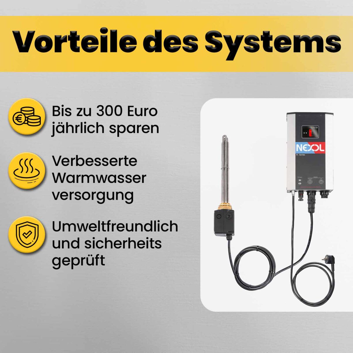 2000W PV Heizstab Komplettset- Bifazial Solarmodule, Nexol NEX R1 Hybrid Heizstab und Energiecontroller für Warmwasserbereitung