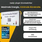 Der Ready2Plugin Stromwächter ist speziell darauf optimiert, die deutsche 800W-Regelung für steckbare Solaranlagen einzuhalten. Er reguliert die Energieeinspeisung ins Netz und stellt sicher, dass nur bis zu 800 W eingespeist werden, was die Einhaltung der Vorschriften vereinfacht und zusätzlichen Papierkram minimiert.