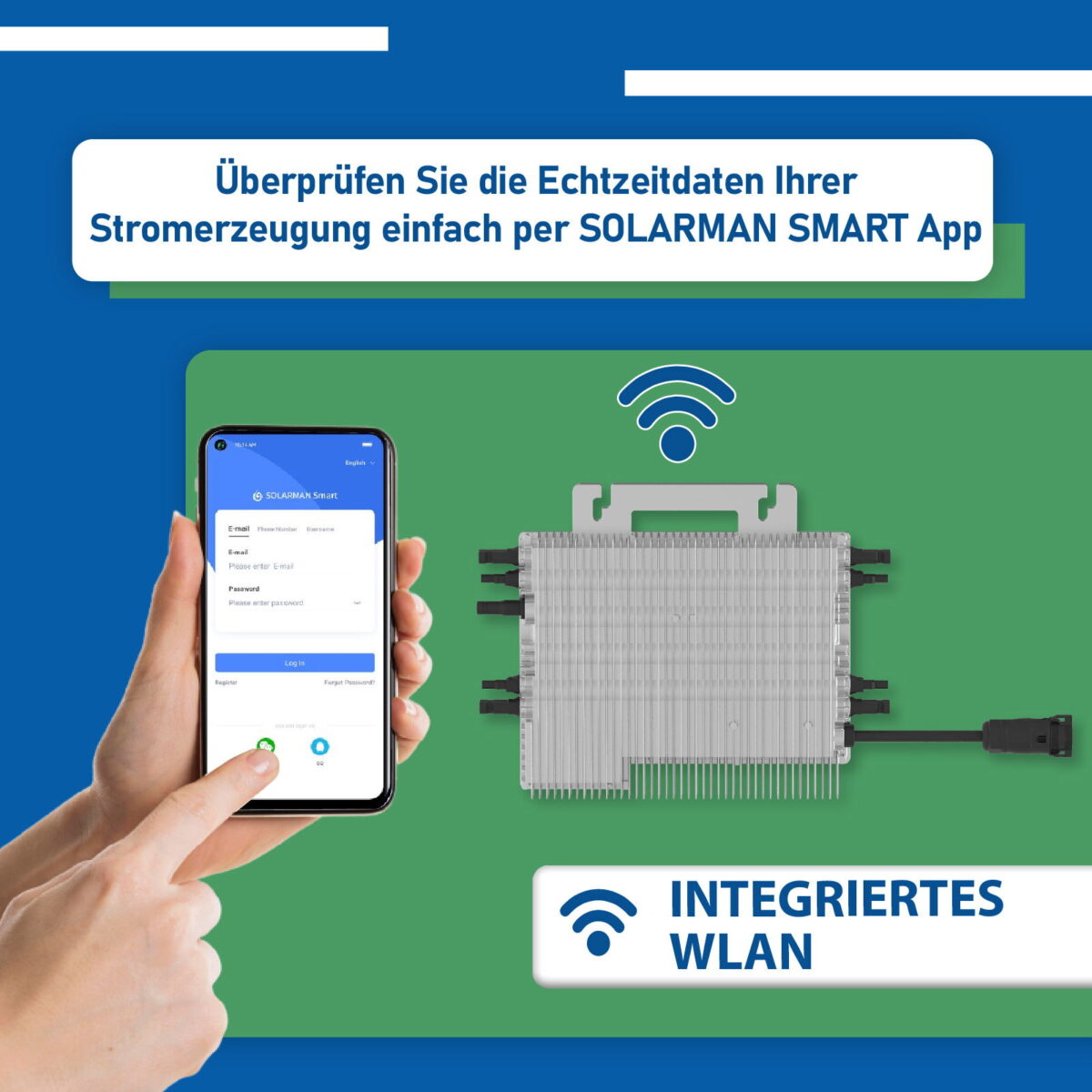 Integriertes WIFI : Der Deye SUN-M160G4-EU-Q0 1600W Wechselrichter verfügt über eingebaute WIFI-Kommunikationsfähigkeiten, die eine drahtlose Konnektivität und Datenübertragung erleichtern.